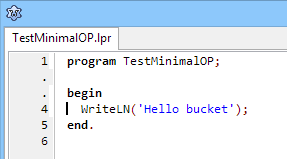 program TestMinimalOP; begin WriteLN('Hello bucket'); end.