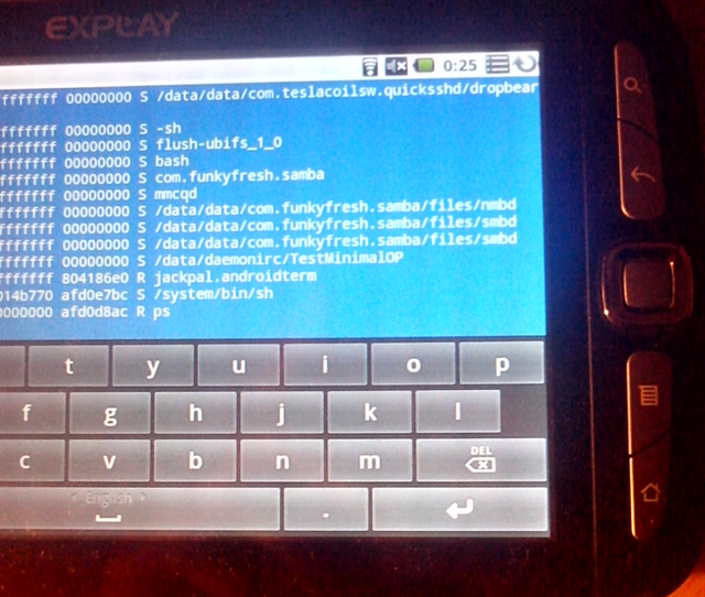 Через три часа я ещё раз запустил на планшете ps, но на этот раз не через ssh, а в консоли планшета: