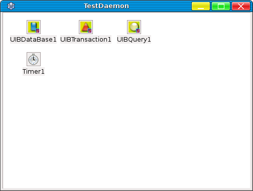 Разместим в окне сервиса компоненты доступа к базе данных (UIBDataBase1, UIBQuery1, UIBTransaction1). Для периодического сканирования каталога, в котором могут находится и появляться в течение работы сервиса файлы, будем использовать таймер (Timer1).
