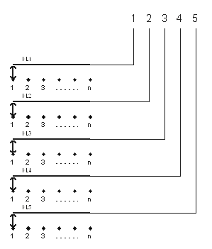 Устройство ввода дискретных сигналов работает по следующему принципу: коммутатор последовательно подключает по пять входных каналов к порту ввода ввода компьютера, рисунок 5. После этого компьютер считывает значения установленные на порту ввода в компьютер и выдает сигнал коммутатору подключить следующие пять каналов. В параллельном порту Centronic, для чтения доступны пять бит по адресу 379, в шестнадцатеричной системе счисления.