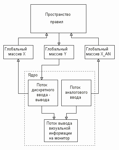 Связь ядра с пространством правил осуществляется через три глобально определенных массива:
