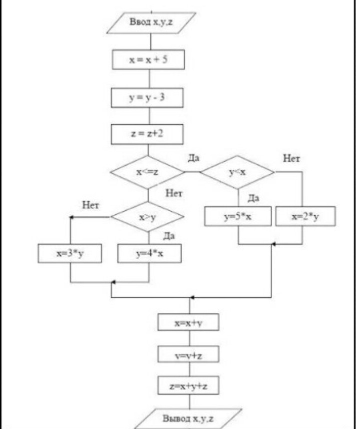 BoWL Так ведь эта блок-схема - и есть условие задачи. Она содержит в себе простенький алгоритм. Единственное, чего не хватает для технического задания - это описания способа реализации ввода-вывода. Тоесть, как вы будете вводить данные и как выводить. Это может быть процедура с параметрами, форма с элементами управления, отдельный элемент управления с собственным классом, консольное приложение и т.п.